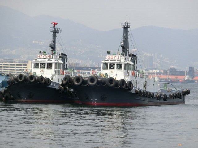 この写真は先月24日第四突堤に停泊中の処をお馴染みのEさんが撮影されました^^。序でに送って頂いた豪華船接岸時に不可欠なタグボートもご覧下さい。Eさんが定年まで勤務されたH社の早見丸と早雄丸です。タグボートの内部は竣工時のレセプションなどで良く見せて頂きまししたが、船体に似合わぬ物凄いエンジンルームの中に小さくてもキッチンからトイレバスとマンションのモデルルームのような綺麗な一室があったのを良く憶えています^^。