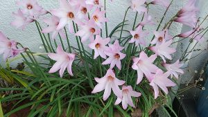 然し此の色だけはアマリリス独特であるように思えアマリリス色とでも言うべきでしょうか?道行く人たちの視線が甚く注がれて、中にはスマホで写真を撮る方も居られますから可成り露出度が高いようですが、昨年まで私にしか見られなかったこの花も今年は衆人の視線を浴びて可成り戸惑っているようです^^。