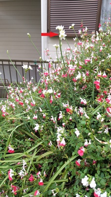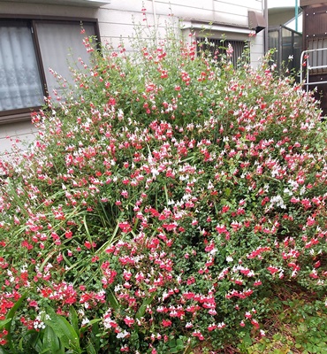 雑草が猛々しい草熱(いき)れの中をワッと咲いて居るのは真っ赤なペンタスです。小さい花なのに花弁が5つもあるから驚きます。ピンクや白いのもありますが、私は断然華のある赤色がいいなと思います^^。