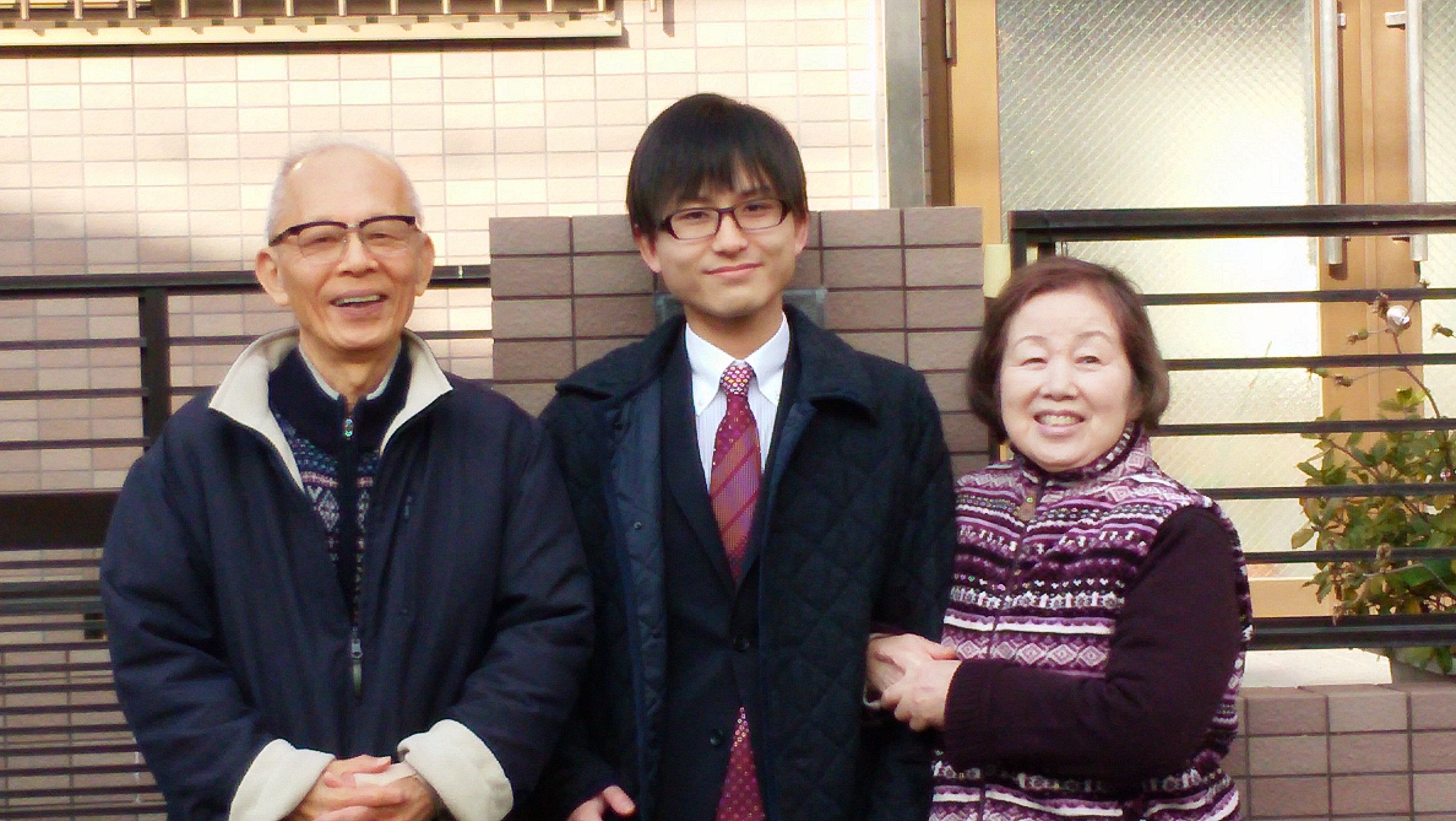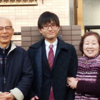 大震災の一月前に誕生した孫が二十歳になり、年末に帰郷したが12日の成人式に行ってその儘東京の学校に帰って行った。前日家族全員で記念撮影に行くとか正装だったため「枯木も山の賑わい」と変な理屈を付けて私と愚妻が事務所前で孫と並んで写真を撮った^^。孫の腕にしっかりと掴まって仕合わせ一杯愚妻の嬉しそうな笑顔が印象的だな。