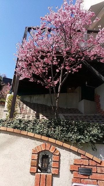 春が来た^^。先週散歩の折、丘の斜面に3-4年前に建てられた洒落た洋風の家の庭に咲き誇ったなのかか分からぬ花を見つけた。桃栗三年と言うから桃かも知れない。この花のおかげで此の家全体がとても上品な雰囲気になっているが、住んでいる人が優れた美的感覚の持ち主だろうと感心した。この花は果たして桃だろうか?実が生れば桃だからもう一月したら覗いてみよう^^。