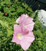 今年も漸く雑草を掻き分けながらヒルガオが咲き始めた。花も葉も虫食いでボロボロだが此れは庭に住み着いて毎年繁殖する三角バッタが食い荒らしたものだ、でも大量の三角バッタの誕生はアクリル水槽でレタスを与えながら育て庭に放したコオロギ同様キリギリスの常食が確保されたことを意味するから安心だ^^。右の写真はキリギリスの生活環境を考え、に食べられないように更には雨露も充分に凌げる繁茂したジャングルのような庭だ。蛇でも出てきそうだから私以外は誰も近付かない仕組みになっている^^。道行く人は誰もが荒れ果て放置されて居る庭を奇異な目で見て通るが私は意に介さない。