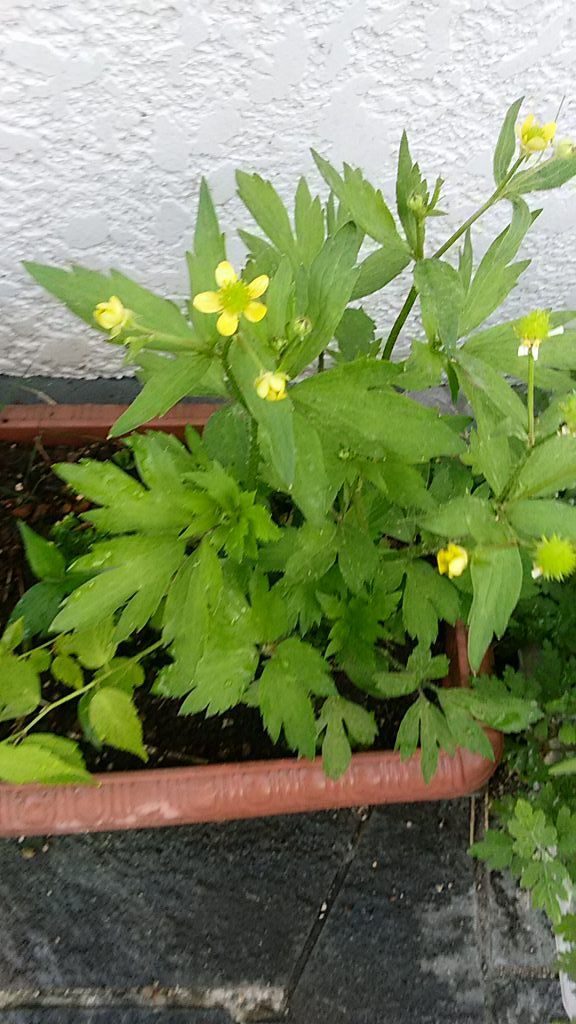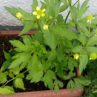 雨も滅多に降らずに暑い暑い毎日でウンザリしています。夕刻の水遣りが欠かせません。野鳥の群れが朝晩喧しく早くも真夏の到来です、自宅前のプランターでは5年前加古川の土手で採取して庭に植えたキツネのボタンの種が10mも飛んできて咲いています^^。種が風に乗ったものと思います、買ってきた花の苗はすぐに消えてしまうのに雑草って逞しいですね。雑草と言えば長く植えたことを後悔し、庭中絨毯のように跋扈していたへび苺が何故か今年に限って生えてきませんでした。不思議でなりません、それはそれで大喜びなんですがキリギリスの好物でもあったので少々複雑な心境です。