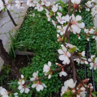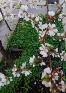 うちの土手では水仙が終わって梅桃(ゆすらうめ)が開花しています。小さくて梅の花とも桃の花とも少し違います。梅桃(ゆすらうめ)の語源がこの花の姿から名付けられたことが良く分かりますね^^。知らないと「梅桃」は読めない字ですが、「ゆすらうめ」と仮名入力するとしっかり変換されるから驚かれたことでしょう。嘘だと思ったら一度国語辞典を引いてみて下さい。ホラ出てるでしょ^^、昨秋堆肥を沢山入れたので今年はきっと大きな実を一杯付けてくれるものと大きな期待を抱いています。