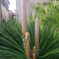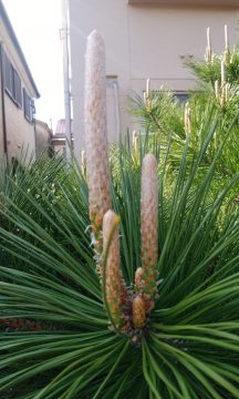 この時季近くのお庭で咲く松の花を見つけました。此の花はご覧のように見事な花で老木であるうちの松とはまるで比べ物にならず若木の松の花は華があって綺麗やな、美しいな!とメチャ感動しました^^。処で此奴は花粉を飛ばさないんやろか?(飛ばします)