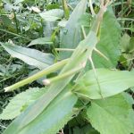 うちでは秋の訪れ何時もコウロギの鳴き声と精霊飛蝗の到来で始まります^^。バッタは鳥に見つけられぬよう昼顔の葉と同化して居ますから、動いてくれないと見つけるのが容易ではありません。小さな三角バッタは無数に誕生しますが精霊飛蝗は他所から飛来してくるので此奴を見つけると「やっと秋が来たんやなあ」とセンチメンタルになる私です。今年は遂にムカシトンボが来なかったみたいです(;;)、西に10km辺り行かぬと湖沼や田圃を見ることが叶わぬ昨今ですから、トンボが見ることが少なくなったのも時代の流れでしょうか(;;)。集団で道を乱舞し帽子で容易に捉まえられたアキアカネも最近では随分少なくなりとても寂しくなりました。きっと彼等も農薬被害者だと思いますが、人間だって決して他人事(ひとごと)ではないことを知るべきです。
