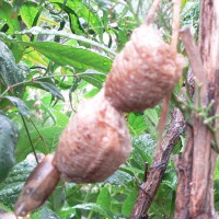 7月にもなると庭の雑草も一段と生長し、虫達も同じく随分大きくなった。昨秋お得意先から頂戴したカマキリの卵は数百匹生まれる筈だったが結局孵らなかった(;;)、処が何処かから風に乗って来たカマキリの赤ちゃんが数匹飛んできて隣家の愚娘宅庭のバジルの葉に棲息している。どうやらバジルの葉を食する虫が餌になるらしく一向に場所替えせず1週間になるのに律儀に棲みついている^^。事務所の庭に連れてきて背の高い草に棲まさないと鳥に食べられると忠告するのだが、愚娘は何故か可愛いカマキリの赤ちゃんの仕草が気に入って居り承知しない、虫が何より大嫌いの愚娘にしては珍しいことだと愕いているが、幼いカマキリの仕草がユーモラスだからだろう。でももう一月もしたら10cmにも成長するからあの獰猛な面構えに愚娘はとても耐えきれないだろうな^^。