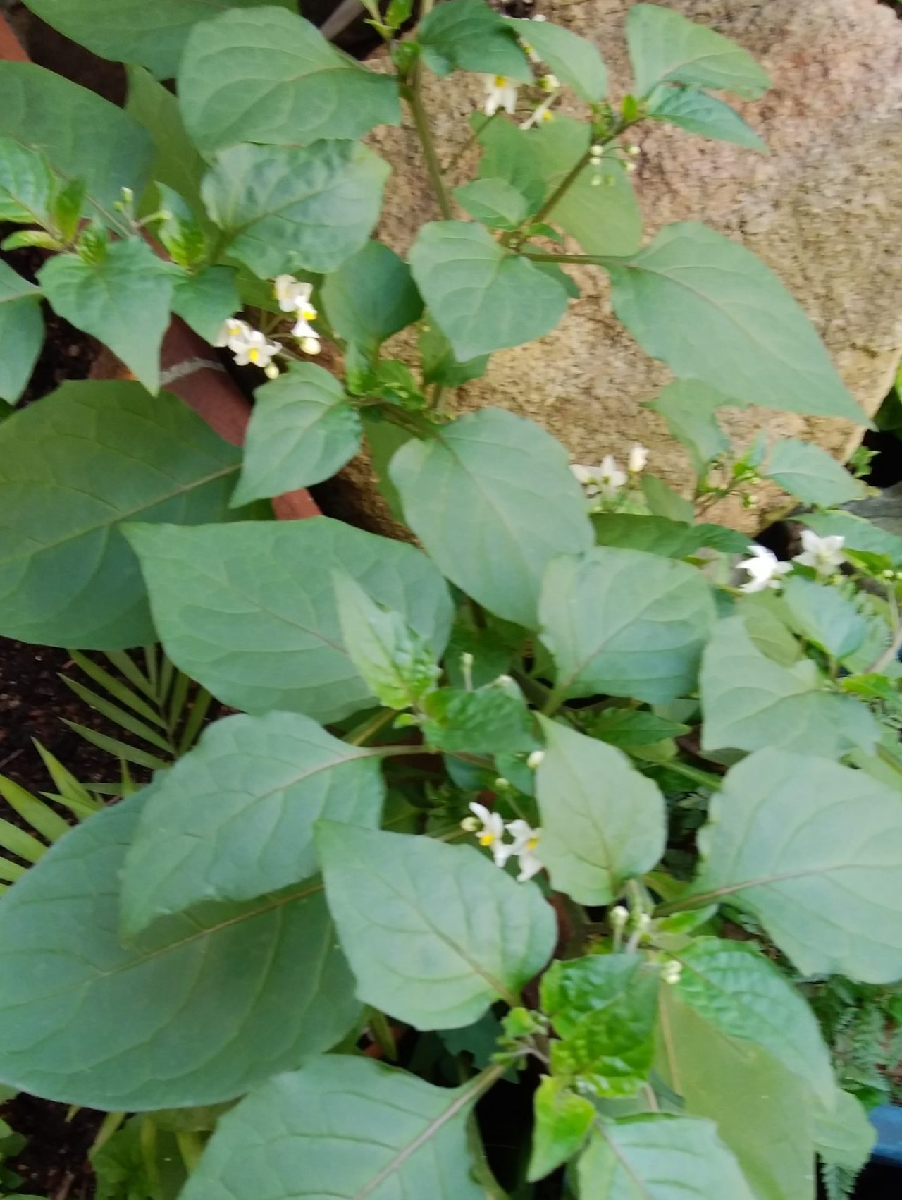 何処から飛んできたのか春が来たことを察して薄暗い庭の隅に犬酸漿イヌホオズキ)がひっそり咲きました。ナス科の植物で小さい紺の果実が束になって実ります。これは道端や民家の庭に咲く嫌われ者の雑草で花言葉は「嘘つき」です。花言葉から皆に嫌われる雑草であることが分かります、でも私の好きな花です。「憎まれ者世に憚る」って言いますね。そうです、私もこの花の仲間なんです。