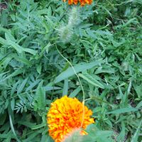 熱海や東北地方が豪雨災害だと謂うのに神戸は雨が降らなくなってからもう何日になるのか思い出せぬほどです(;;)。庭やプランターへの水遣りに汗をかく毎日が幾日続いたことでしょう。8月を迎えて毎夕庭への水遣りによって花々より猛々しく雑草が深く生い茂り三角バッタも沢山生まれてピョンピョンと飛び交っています。今日は蔓延った雑草の中で負けずに健気に咲いているマリーゴールドヒルガオを御覧頂きましょう^^。