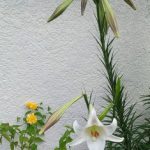 戦争中の疎開先の方便(たつき)では、4年生であっても私は生活の一部の担い手であり30坪の野菜畑と鶏小屋管理以外に風呂や食事の燃料調達のため下校後毎日裏山に薪取りに行って居ましたが、思い掛けない処にポツンと咲いている山百合に出会う度に空腹のひもじさから来るトゲトゲした心まで癒やされて居ました。今もこの花を見ると遠い昔が懐かしく思われます。思えばあの頃授業中考えていることは勉強のことではなく食べ物のことであり、年中ひもじかったため食べられるものはタンポポ、イタドリ、ドングリなど何でもよかったのです。昔は農薬などなかった優しい時代だったので、とかげ(かなへび)が何処にでも沢山棲息して居たので今のようにゲームも何もない私には無二の友であり作業中も彼らを掌に載せて遊んでいました、とかげは嫌がっていたけど…。