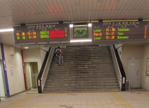 JR垂水駅東口改札で最近エスカレーター設置の要望が強く問題となり駅東部の住民からの要望 が出ています。写真でご覧のように駅は高架下に大きな商店街を抱えている関係で傾斜度が結構きつくて階段は優に60段を超えます。左目の見えない私は段差がはっきりせず上りより下りが大変で手摺りをしっかりと握らないと降りられません(;;)。本駅である西口にはエレベーターがあるので東側から乗車する住民の不満が絶えないようです(;;)。