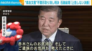6日の夕方石破首相は記者団の取材に応じ、8年前文書の改ざんを強いられたことを苦にして苦にして自死した元財務省近畿財務局職員であった赤木俊夫さん(当時54歳)が詳細に記載された大阪豊中市にある国有地の地価が約8億円だったことを、当時の安倍総理夫妻を慮って当時の近畿財務局理財局長であった佐川宣寿が独断で僅か時価の1割余りの廉価で払い下げを決定し、自身は国税庁長官に抜擢されるも世論や国会での野党の声が厳しくて遂に引責辞任をせざるを得なくなって現在では人目があるので昼間には表を歩けない隠遁生活を余儀なくされています。これは自業自得であり当然の報いでありましたが、当時の安倍総理が「自身や妻がこの事件に関わっていることが判明すれば私は総理も議員も辞職して身の潔白を晴らす」と「ぬけぬけと公言したことを受けて財務省と近畿財務局は結託して決算文書の改竄に数回繰り返した結果、赤木さんが責任を取って自死すると謂う悼ましい事件起きたのは皆様よくご記憶の通りです。国有地の払い下げを受けたあの朝鮮人夫妻は事件発覚後収監されましたから近畿財務局理財局長からたとえ短時間であろうとも国税庁長官の席に栄転した佐川宣寿は明らかに総理に阿って、事実を秘匿して己の立身出世を諮った不正行為であり、おまけに正義の人である赤木和夫さんを死に追いやった罪は万死に値すると思われます。佐川氏が現在も夜道しか歩けないのは全てあの事件の詳細に付いて不埒にも国会答弁をし、忠臣であるべき赤木和夫さんを自死に追い込んだ罪は、到底赦されるべきことではありません🤬。財務省の文書についての不開示問題は、5年に亘って鬩ぎあいが続いて参りましたが、本年1月大阪高裁が財務省の決定を取り消す決定に伴って6日石破総理が上告を断念し、高裁判決を受け入れることを表明されたことは画期的な出来事であました。