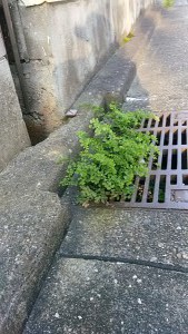 先日ご紹介した風情のある溝のアジアンタムが或る日突然スッカリ刈られてしまった(;;)。此の状態を「焚琴煮鶴」と言う。此の四字熟語は漢検テストによく出るから憶えている。殺風景で風流心のないことを謂うのだ。何でも溝の上の家の住民が空き缶を捨てられて困るからと市に訴えたので、役人が沢山来て無粋にも全部刈り取り風情のない溝に戻してしまった。