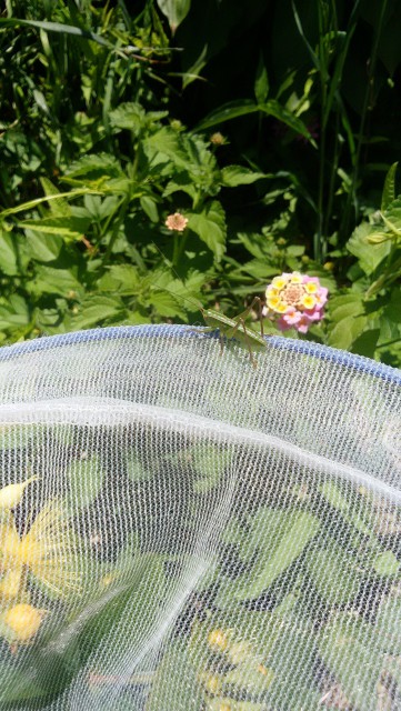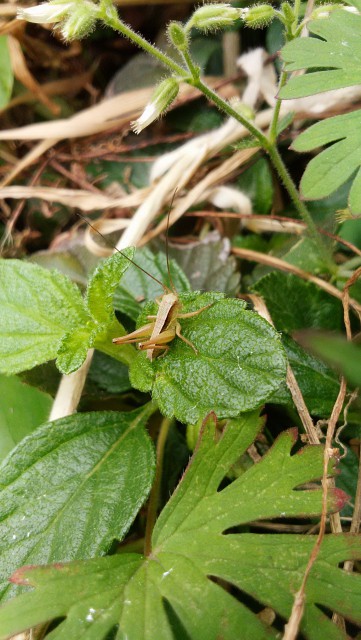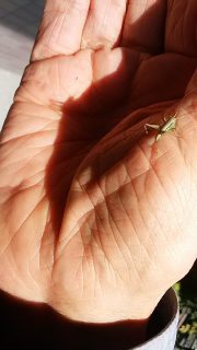 連休明けに庭の手入れをして居たら、何か小さいものがピョンピョン飛んでいる。追いかけるると狽えて私の服の袖に止まったところをスマホでパチリ、キリギリスの誕生でしだ^^。未だ1cm足らずですから動いてくれないと分かりません。誕生してひと月くらい経ったものでしょうか。3月末にシルバーセンターに頼んで草刈りをして貰ったため庭には未だ充分に雑草が生え揃っていないので幼虫の生育が心配ですが、雑草が生い茂るまで燕に見付けられないことを神に祈るばかりです。袖の幅からキリギリスの小さいことがお分かりでしょうか^^。