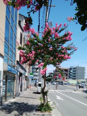 暑い昼下がりにコロナのせいもあって殆ど誰も通らない垂水駅近くの区役所にマイナンバー電子証明書の5年更新に行ったら大通りの街路樹として植えられた百日紅(さるすべり)が今年は寂しく咲いていました。夏の花なら木槿(むくげ)か百日紅と言われますね、何時もはもっと沢山花を付ける筈なのに今年に限って花が少ないのは雨が少なくて暑いため体力不足が原因のようです(;;)。区役所ではポイント5000円目当てにしたマイナンバー新規登録の人がもの凄い混みようで溢れて居り、マイナンバー未取得の人がこんなに居たことにはとても驚きでした(@@)。義務化されても何のメリットもないと動こうとしないのが日本人の悪癖です!