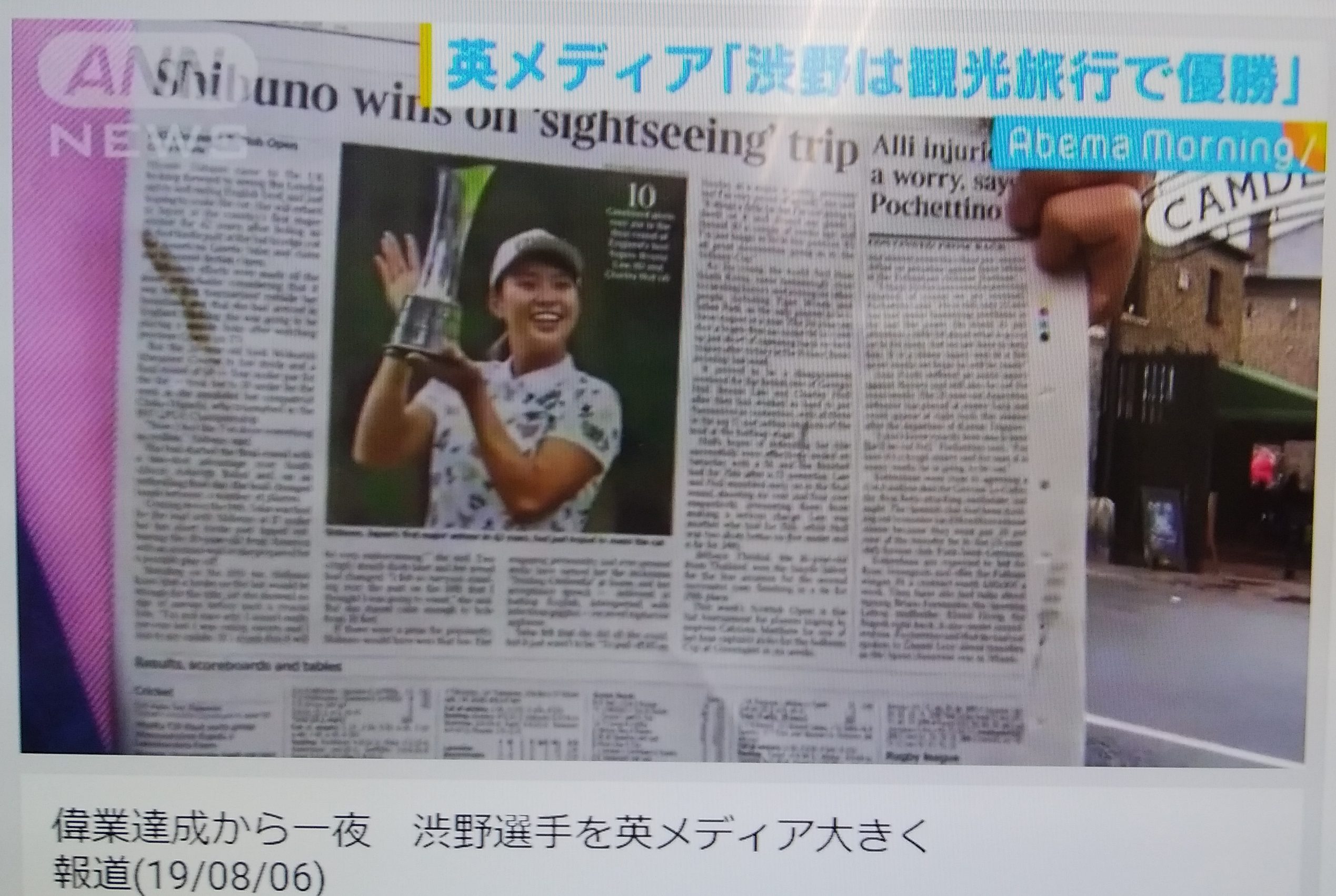 渋野日向子単独首位で始まり3年前を思い出した全英女子オープンも終わり彼女の3位に続いて、全英初出場の山下美夢有、堀琴音が13位と15位に入って来季のシードを獲得しました^^。今年から賞金が大幅のアップされたため3位の渋野選手の賞金でも52万ドル(邦貨6600万円)と桁外れ、13位15位の山下美夢有、堀琴音両人は各1570万円、1350万円と国内ツアー優勝金額に近く、コロナ禍とEUとの軋轢に苦しむイギリスの乾坤一擲椀飯振る舞いでした^^。