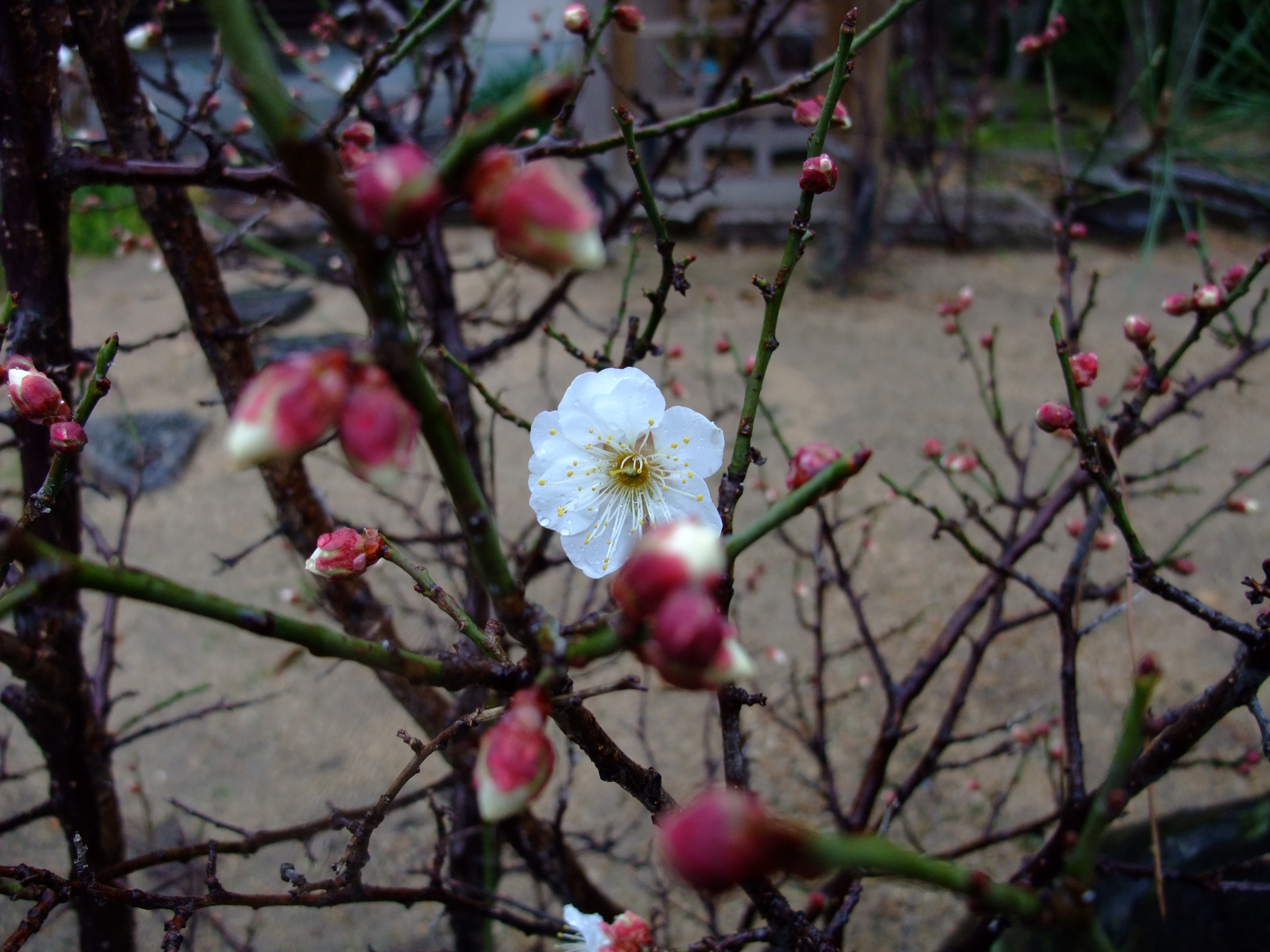 早くも2月半端が到来しました。玄関先の庭で今年も春を感じて可愛い白梅が一輪咲きました^^。幾つか蕾が傍らにありますが彼女達も間もなく咲いてくれそうです^^。