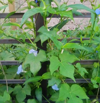 暑い夏も流石にその容色を失って、一年に少ししかない貴重な秋が漸く到来しました^^。東の奥庭では一つだけ結構大きな空色朝顔が雑草の中を掻き分けて花を付けているのを先週発見して驚きました。絶滅しそうなので今度こそ種を取ろうと思ったのですが、花が萎れた途端雑草に埋もれて今回も種を見付けられそうもありません(;;)。きっと「枯木も山の賑わい」と雑草を放置していた愚かな私へ朝顔の報復であったであろうと思い悄然として居ます(;;)。枯れた石蕗の葉が秋の哀れを誘います(;;)。