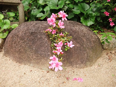芦屋のNさんから今年も満開になった岩さつき(庭石の間からさつきが生えている)を送られた^^何時だったか昔ご紹介したが今年は24個も花を付けているそうだ。凄いね、石の割れ目からどのように根が土壌に達しているのか分からないが地上部からは一見数ミリの岩の割れ目にさつきが生えている。何時だったか昔コンクリの割れ目から生えた「ど根性大根」って評判になったよね^^。「自分は不幸だ!差別だ!」なんて一言も叫べないけど植物は何時になっても逞しいね。
