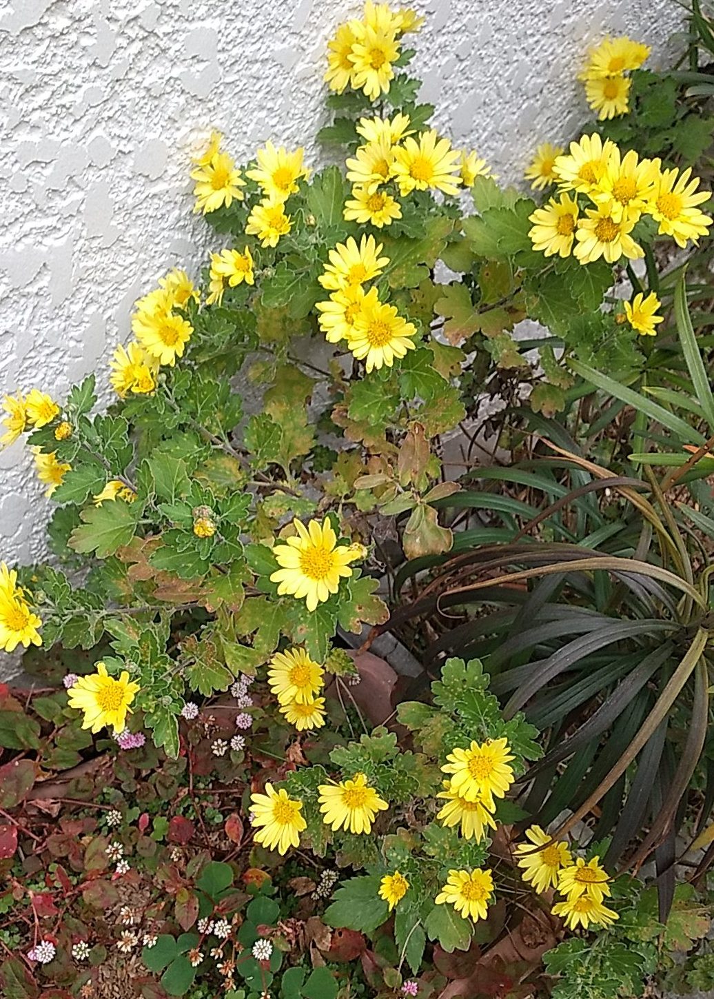 師走も半ばを迎えて寒さが日一日と酷しくなりましたね。庭の花も寂しくなりました。今日は自宅道路脇のプランターから咲き零れる赤と黄の野菊をご紹介しましょう。寒いとき毎年一度は登場する常連さんです^^。